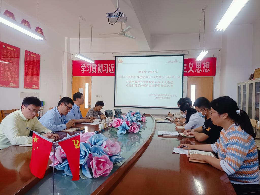 5月24日,Beat365中文官方网站党总支理论学习中心组在理工楼2514会议室开展集体学习活动,学习的专题是:习近平新时代中国特色社会主义思想是党和国家必须长期坚持的指导思想。学院党总支书记刘玉宝主持学习并讲话,学院党政领导、党总支委员参与了学习,校党委主题教育第七指导组组长刘书玉到会指导。