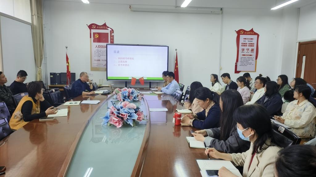 为深入贯彻落实党建与业务深度融合的发展理念,切实提升学院教育教学质量,助力学生科学规划考研目标,4月16日,Beat365中文官方网站在豁然楼A415会议室开展考研培训专题活动,活动由学院党委书记李中军主讲,全体教师参会。
