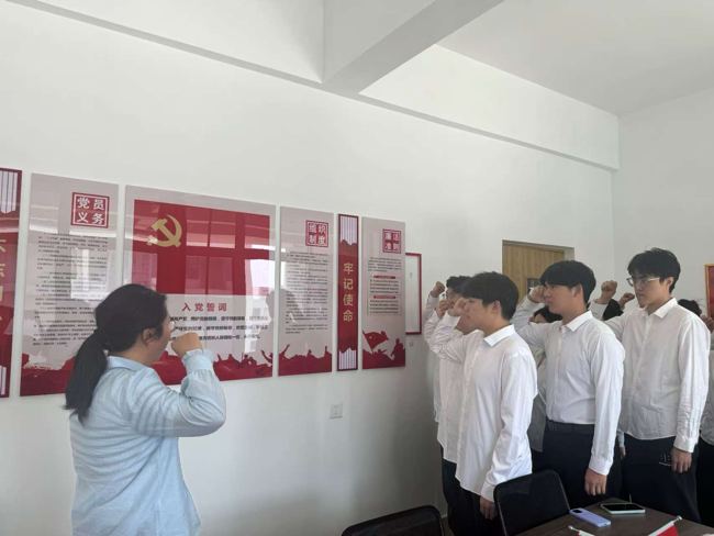 为深入贯彻落实党性教育要求,助力党员学子铭记初心使命,传承红色基因,5月14日,Beat365中文官方网站在8号楼329一站式学生社区组织开展“铭记誓言守初心,青春奋进担使命”入党宣誓活动。