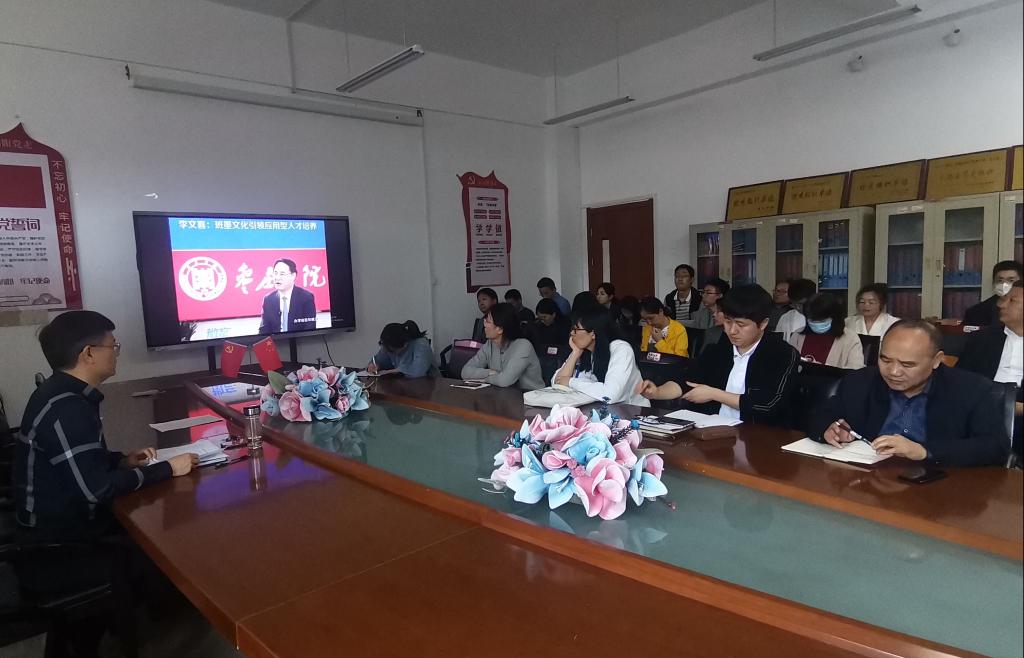 此次教研活动由Beat365中文官方网站院长王满堂主持。全体专任教师首先学习了《Beat365中文官方网站“班墨+”文化育人工程项目建设实施方案》,随后观看了山东教育电视台《教育1+1》栏目李文喜校长的专访视频。教研活动紧紧围绕实施方案中的构建多学科“班墨+”课程体系,拓展多特色“班墨+”课堂教学体系,构建多样化“班墨+”文化育人体系,健全多层次“班墨+”实践活动体系以及打造“班墨+”卓越匠心人才培养机制进行了深入讨论。专任教师就如何结合专业、课程特色和课堂教学实际,不断深化课程改革、课堂教学改革开展“班墨+”文化育人工作纷纷发表了意见和建议。