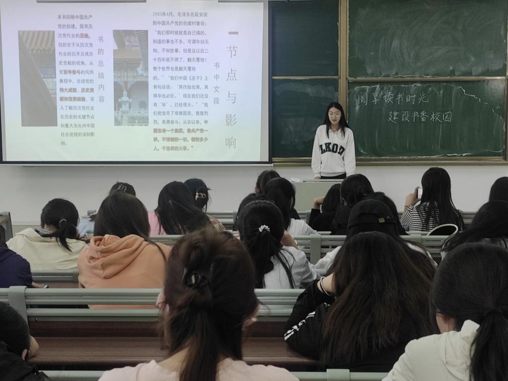 活动伊始,领读人高鲁馨带领同学们朗读《可爱的中国》选段,为接下来的阅读活动营造了浓厚的氛围。随后,主讲人采用讲述和分享的方式,向同学们分享《辉煌之路》《红色的起点》等书籍,共同学习党的创新理论,光辉历史以及中国的伟大变革等内容,帮助同学们拓展读书视野,提高学习质效。主讲人强调,青年一代肩负历史的使命,并呼吁同学们要汲取书中的精神力量,勇担历史使命,为实现中华民族伟大复兴的中国梦而不懈奋斗。