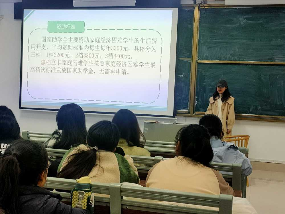 宣讲伊始,李晴从国家助学金资助标准、申请条件、发放与管理三个方面对国家资助政策进行系统讲解,指出受资助学生应了解国家助学金政策的主要内容,明确获得国家助学金的正确途径。李晴提出助学金政策的初衷是帮助经济困难学生顺利完成学业,在成长成才的道路上砥砺前行。同学们纷纷表示要奋发向上,怀着一颗感恩的心,充分利用好助学金,在自己的努力和在国家的帮助下,真正成长为新时代复合型人才。