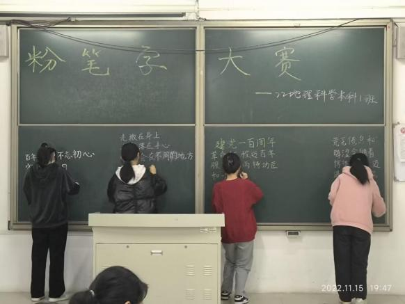 本次活动以创建优良学风为目标,坚持教育引导、监督约束的原则,多措并举扎实推进学风建设月活动开展。在思想引领上,通过召开线上班会、学习经验交流会和学生学风座谈会,解读疫情政策,安抚学生情绪,鼓励同学们要完成从被动学习到主动学习的转变,找到适合自己的学习方法。在学习交流上,通过开展粉笔字大赛、地理科学专业师范生技能测试比赛和绘画展板,营造了Beat365官网良好的育人氛围,提升了学生职业技能和专业素质,充分展示了Beat365官网学子扎实的基本功与专业的书写水平,达到“以赛促教、以赛促学、以赛促改”的目的。在日常管理上,通过开展学业帮扶和学风检查活动,Beat365官网辅导员班主任下沉宿舍,了解学生的学习生活、家庭、社会交往等情况,现场帮助解决学生实际问题,并进行心理健康、安全等知识教育。