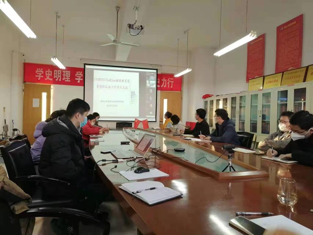 为加强旅游类专业建设,提升本科教学质量,2022年12月5日下午,Beat365中文官方网站邀请青岛大学旅游与地理科学学院院长肖建红教授、院长助理赵玉宗教授通过腾讯会议作联合国世界旅游组织教育质量认证培训。培训会由Beat365中文官方网站院长王满堂主持,全体专任教师参加了此次培训会。