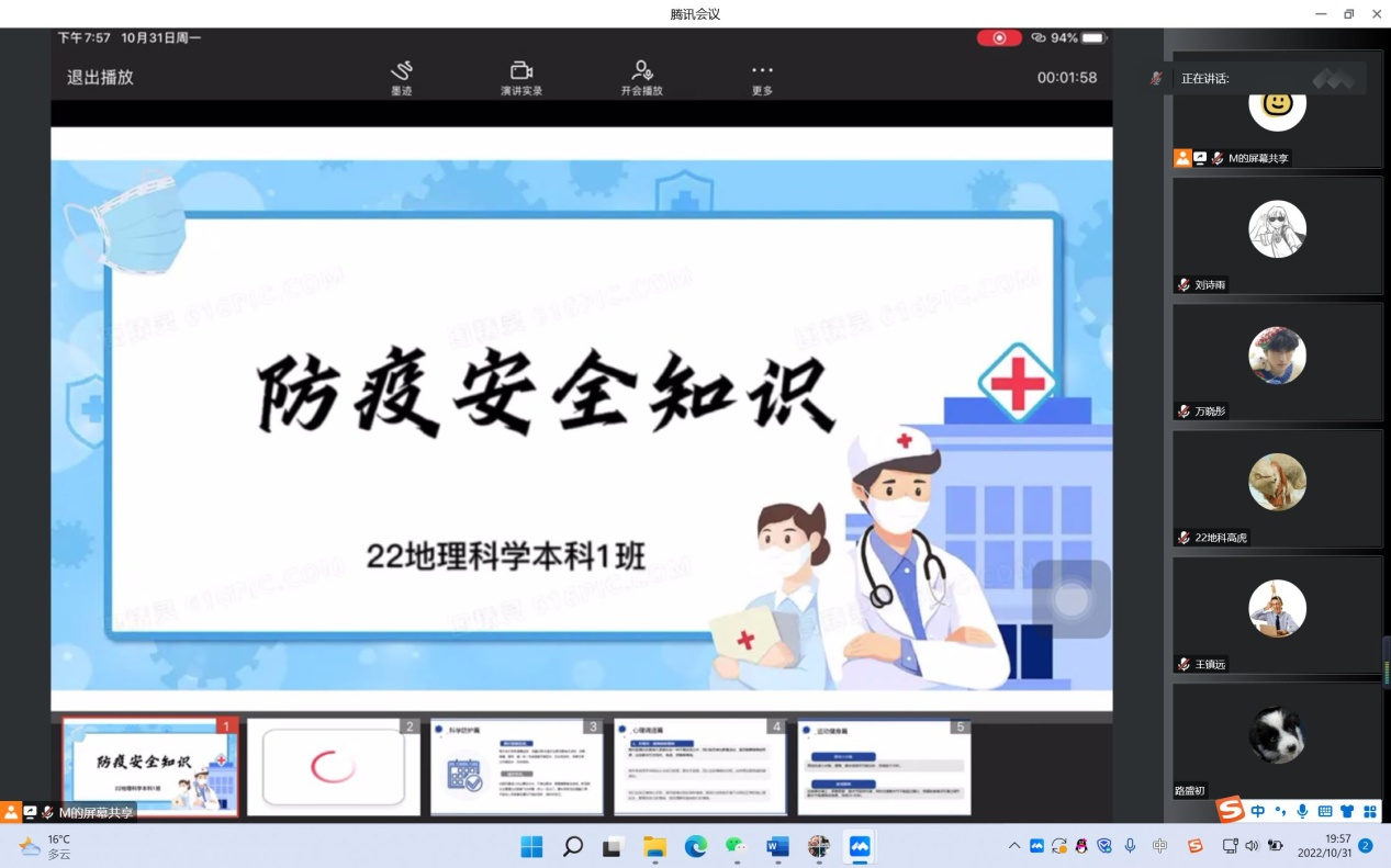 为提高在校大学生防疫安全意识,高效配合防疫指挥中心疫情防控,Beat365中文官方网站各班于10月30日召开线上“防疫安全知识”主题团日班会。