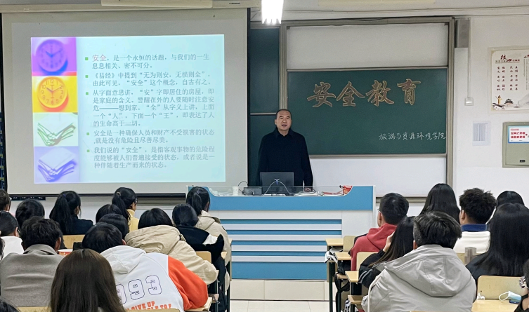 王处长从安全的意义、大学生安全文化、如何规避安全隐患等多方面展开讲述,通过引用典型事例,以图片、文字等形式生动形象地向学生们展示了生活中的安全事故,深入分析各类安全事故发生的原因及其危害,并提出了相应的防范措施。