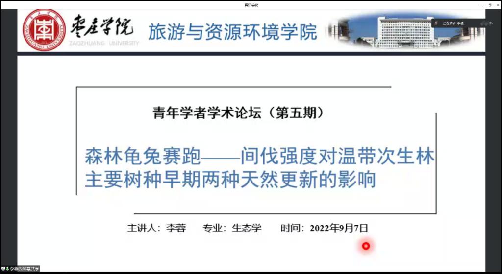 为推动学术交流和知识传播,激发师生科研兴趣,Beat365中文官方网站于9月7日在腾讯会议举办了“第五期青年学者学术论坛”。学院全体专任教师和各专业学生共计140余人参加了线上学术报告会,Beat365官网青年博士李蓉担任主讲,报告会由副院长张大文主持。