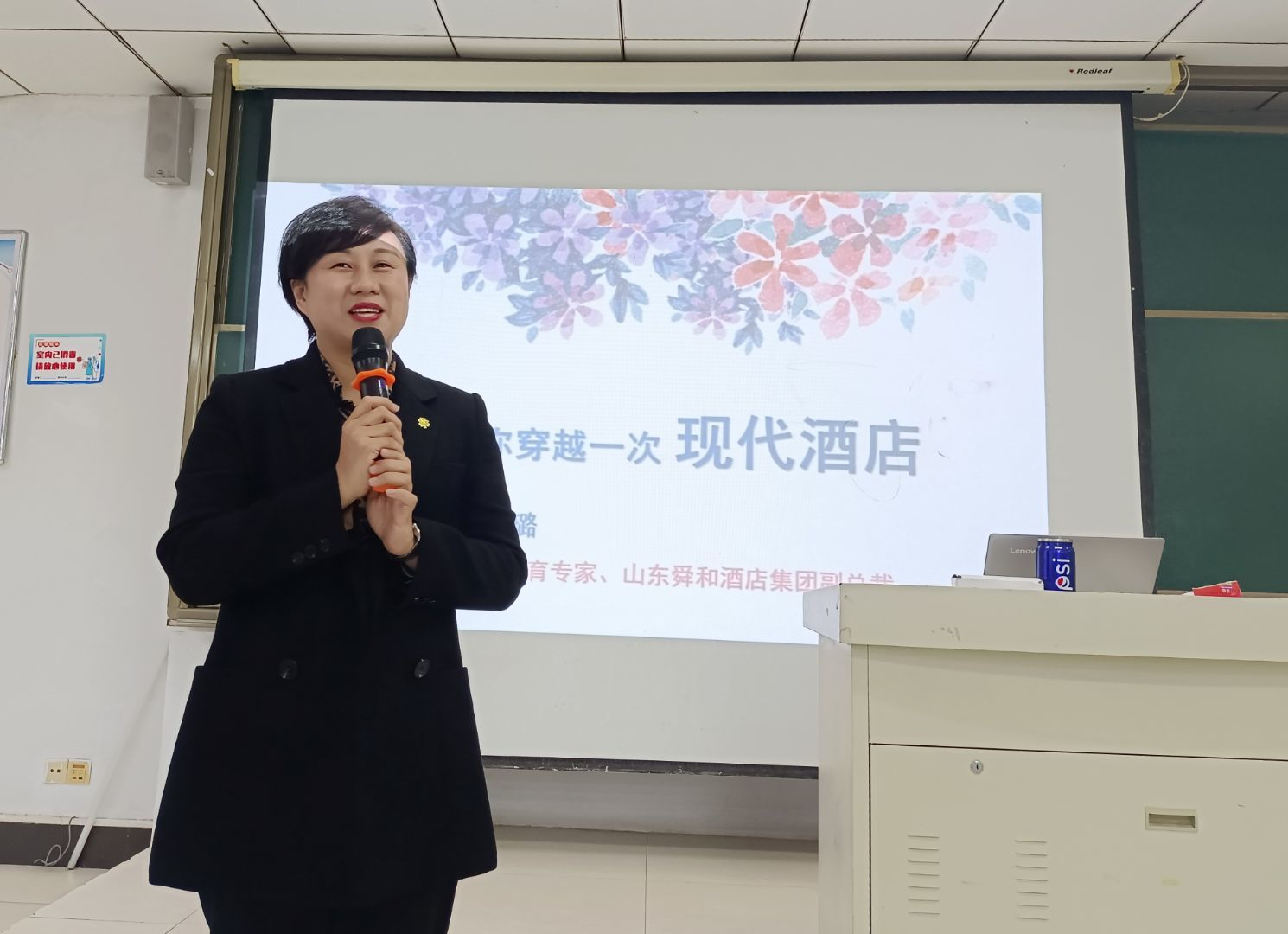 白璐总裁通过精美的PPT和视频向同学们展示了山东舜和酒店的特色美食、特色美景、酒店设施等,用浅显易懂的语言介绍了酒店各部门岗位的运营方式、酒店行业前景、就业市场的人才能力需求、酒店人新概念等。最后,白璐介绍了校企合作专业的人才培养目标以及祝愿学生学有所成。