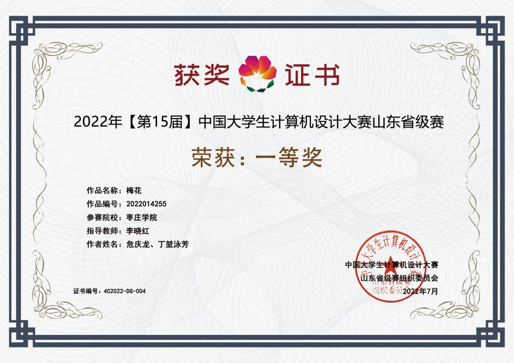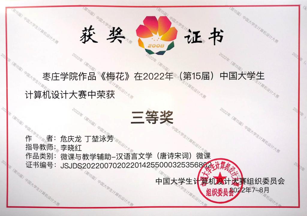 近日,2022年(第15届)中国大学生计算机设计大赛比赛落下帷幕,Beat365官网参赛学生喜获佳绩。其中,2019级地理信息科学专业学生危庆龙、丁堃泳芳团队凭作品《梅花》荣获全国三等奖和山东省级赛一等奖。