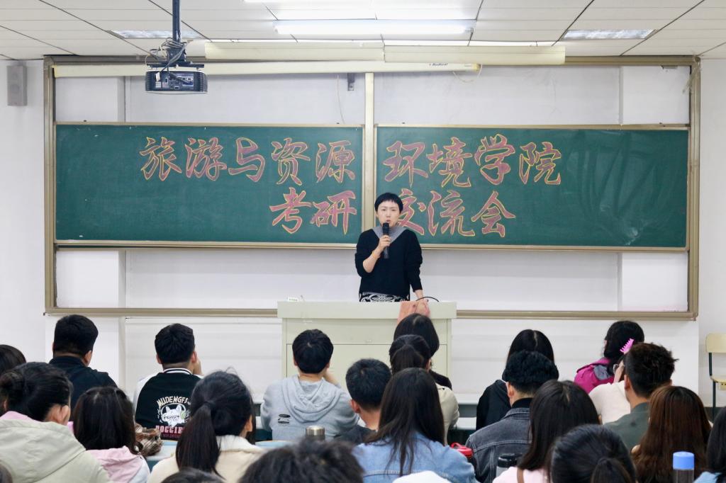 会议伊始,由主持人介绍了旅游学院2019届考研情况。随后三位老师向同学们讲解了考研过程中应注意的事项。老师鼓励大家:考研过程是辛苦的,但也是脱胎换骨的过程,一定要有坚持下去的决心。同学们的重点是要完成在本科阶段还未完成的工作,完成现阶段的学业任务,才能没有后顾之忧地全力准备考研。紧接着考研成功的学生代表发言,介绍初试、复试经验和学校情况,还推荐了一些辅导书和获取考研信息的公众号。最后进入提问环节,老师们和优秀的师哥师姐们采用“一问一答”的方式,有针对性地解决同学们在现阶段存在的各种疑惑,现场气氛十分融洽,同学们受益良多。