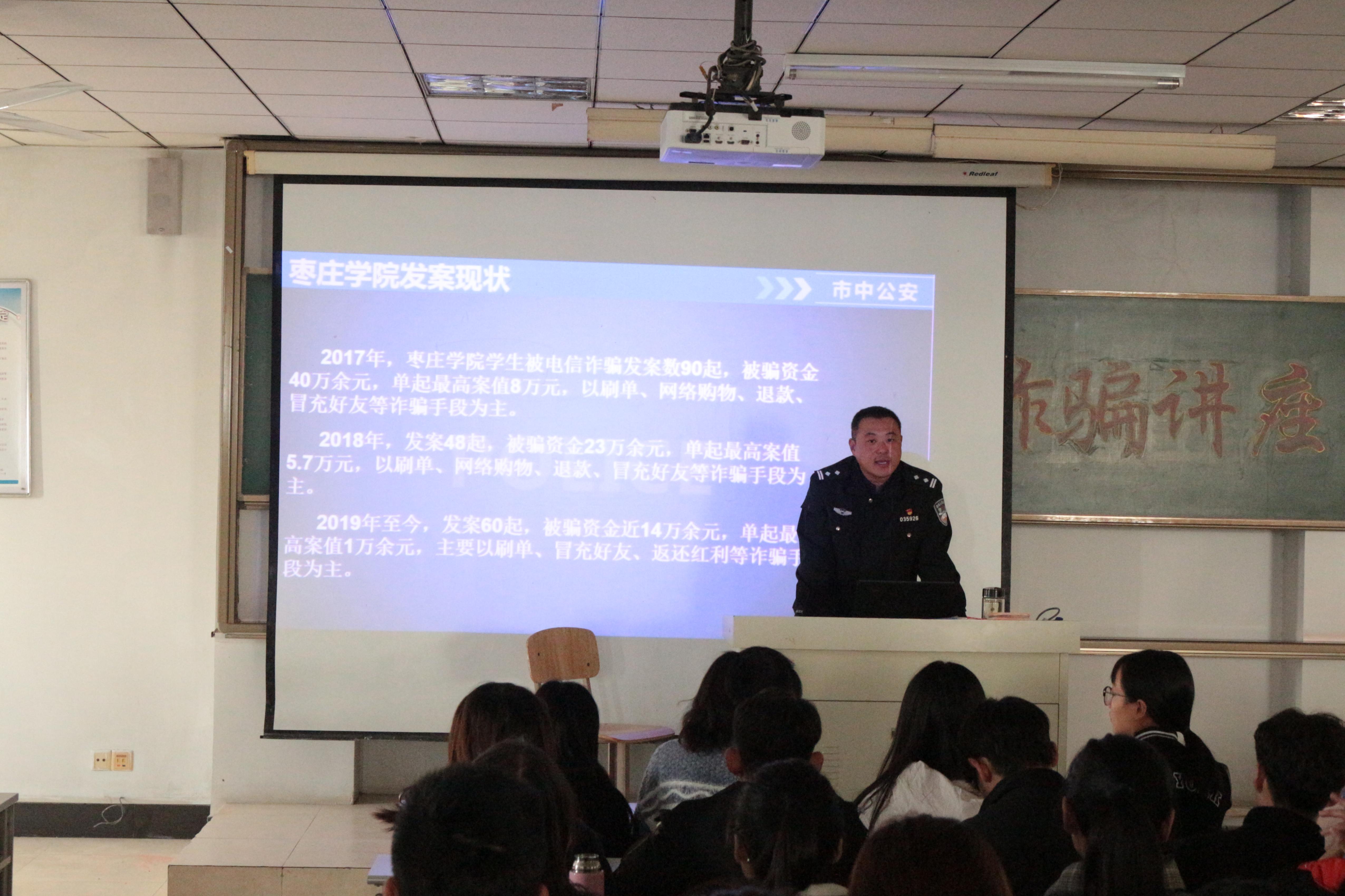 12月4日下午,Beat365中文官方网站在理工楼2505教室开展防诈骗安全教育讲座。本次讲座由渴口派出所刘鹏教导员主讲,200多名学生聆听了讲座。