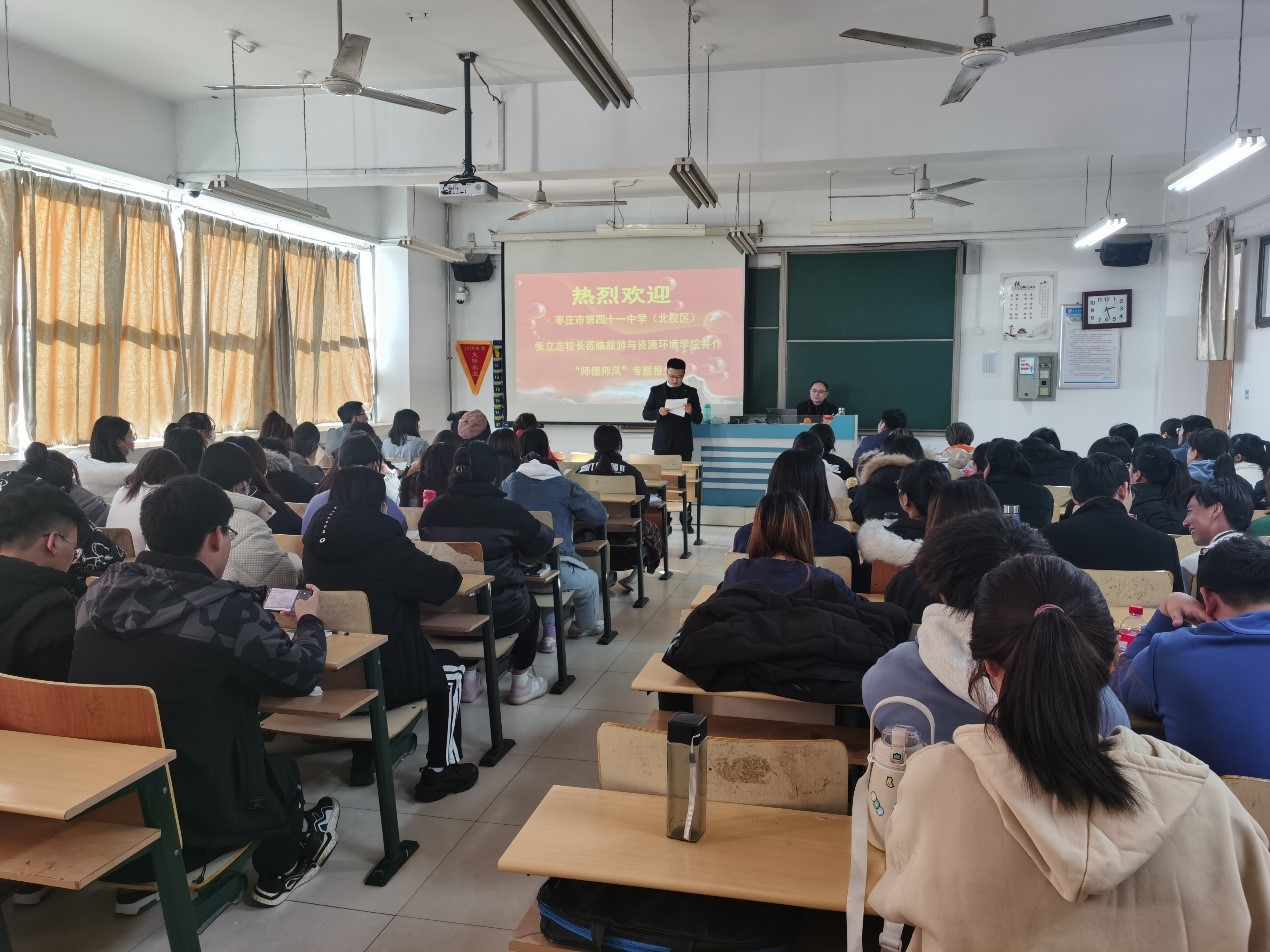 学高为师,德高为范。师德是教师之魂。为加强全院师德师风和学风建设,引导师范生争做新时代党和人民满意的“四有”好老师。11月30日下午在理工楼2404教室,Beat365中文官方网站邀请枣庄市市中区优秀教育工作者、枣庄市地理学科带头人、枣庄市第四十一中学校长、高级教师张立志作师德师风专题报告。学院全体专任教师与2019级、2020级地理科学专业师范生聆听了报告。报告会由副院长张大文主持。
