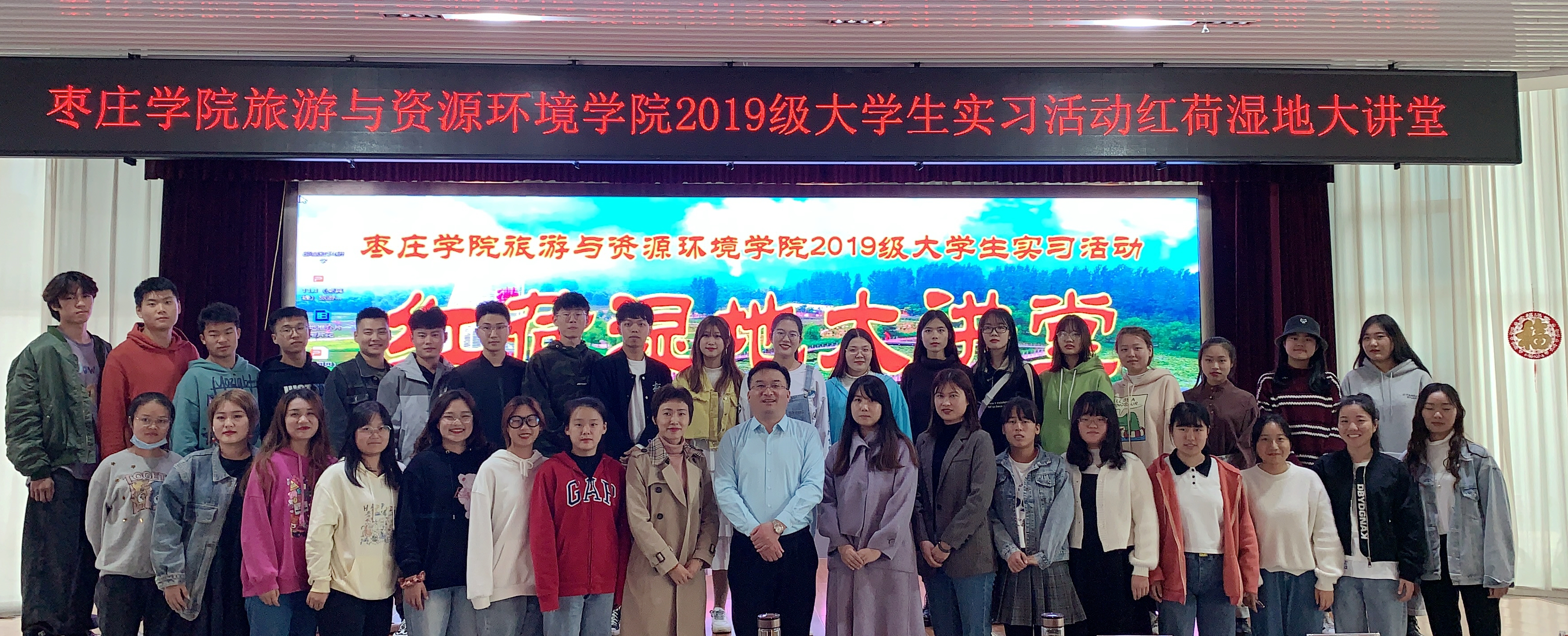 11月1日上午,Beat365中文官方网站2019级同学到滕州微山湖红荷湿地景区进行参观实习。本次实习由孙倩蓉、王唯两位老师带队,旨在将学生在校期间所学理论知识融入实践、提高自身专业素养。
