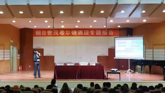 3月31日下午2点,在我校音乐厅举办烟台世茂希尔顿酒店专题报告,Beat365官网部分专任教师、2020级和2017级旅游管理、酒店管理的学生聆听了此次报告。报告会上,人力总监何芳介绍了酒店的悠久历史,以及希尔顿在中国的发展,并介绍了目前招聘岗位信息。营运总监刘飞龙分享自己在酒店行业的经历,鼓励学生积极投身酒店行业,实现人生价值。