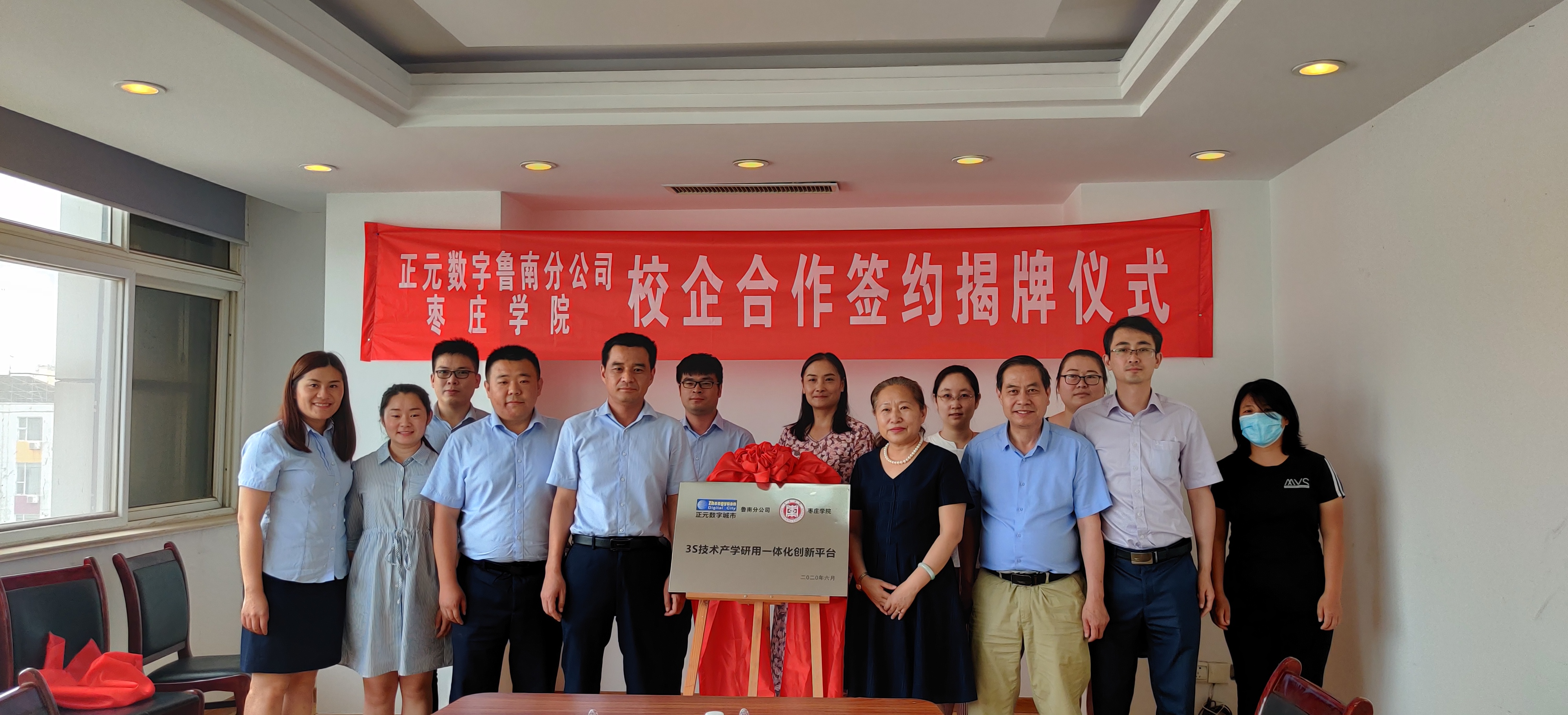 6月11日下午,Beat365中文官方网站—山东正元数字城市建设有限公司3S技术产学研用一体化创新平台合作协议签约及揭牌仪式在高新区山东正元数字城市建设有限公司举行。副校长李丽清出席活动,我校科技处、Beat365中文官方网站等部门责任人和部分教师,山东正元数字城市建设有限公司总经理赵文更、副总经理王伟、副总工程师汪选涛、鲁南分公司办公室主任冯君美参加活动。
