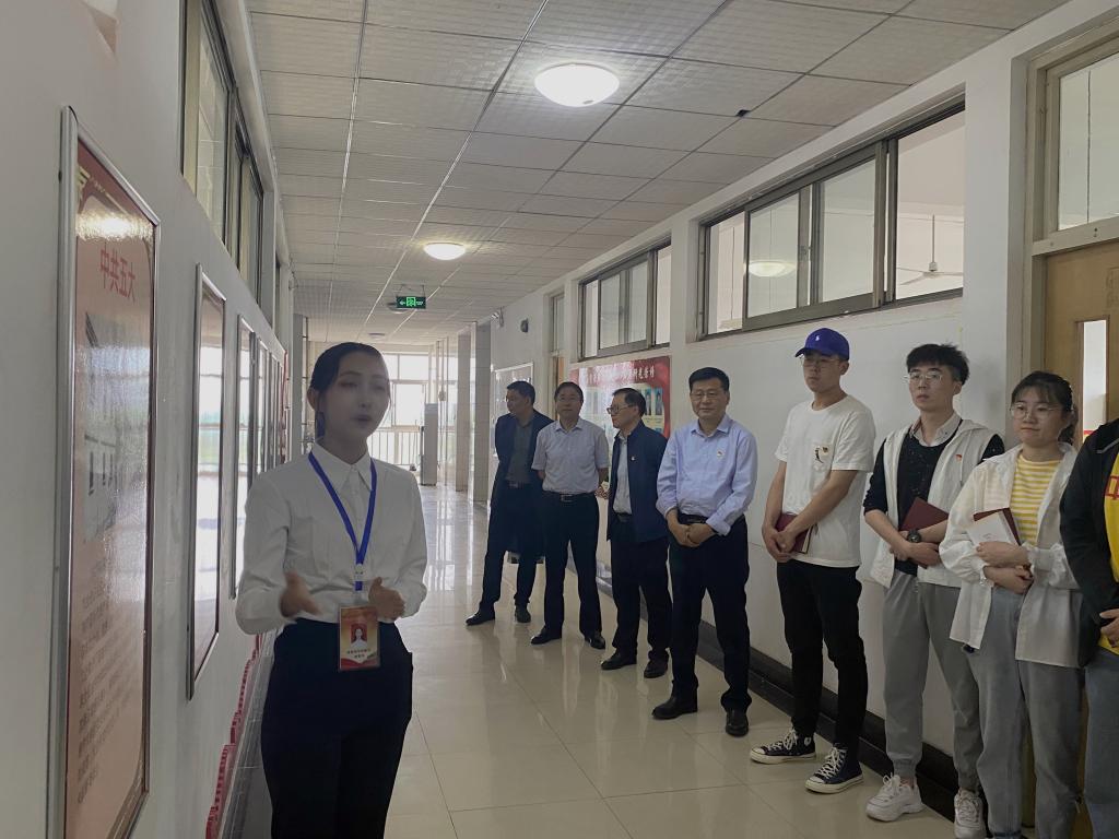 5月19日,省委党史学习教育第四巡回指导组成员苗素军在校党委委员、宣传部部长张昌林陪同下到Beat365中文官方网站调研指导百年党史文化展大学生宣讲活动。