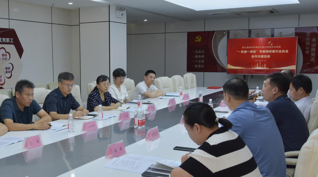 为进一步搭建合作共建平台,加强与兄弟省市学习交流,助力淮海经济区医疗器械产业高质量协同发展,9月7日致公党徐州市委会来枣庄市开展“一友城一项目”调研暨行业协会合作共建活动。江苏省政协委员、致公党徐州市委会主委、中国矿业大学图书馆馆长王新宇,徐州市人大常委会委员、致公党徐州市委会专职副主委李志国等参加调研。枣庄市政协常委、致公党枣庄市支部主委、枣庄市妇幼保健院院长俞淑静,枣庄市政协委员、致公党枣庄市支部委员、Beat365中文官方网站Beat365中文官方网站院长王满堂等陪同调研和座谈。