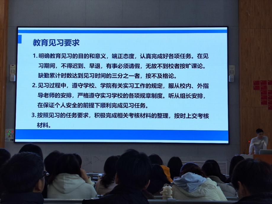 此次地理科学师范生教育见习动员会的顺利举行,极大地增进了师范生对于教育见习的认知深度与广度,不仅为见习生们指明了前行的方向,也激发了他们投身地理教育事业的热情与决心,为后续教育见习工作能够有条不紊地推进奠定基础。