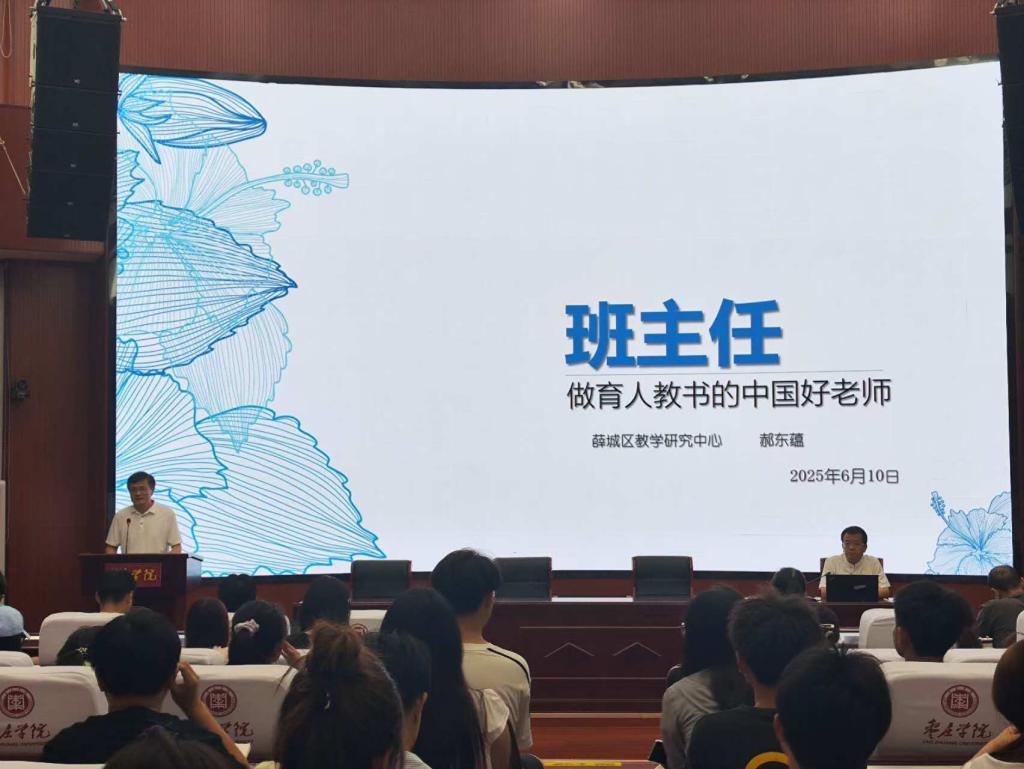 为顺利推进Beat365官网地理科学专业教育见习中见习班主任工作,促进地理科学专业师范生对中学班主任工作的了解,6月10日下午,Beat365中文官方网站邀请了山东省优秀班主任、枣庄市薛城区教学研究中心主任郝东蕴作报告。报告由院长王满堂主持,指导教师及2023级、2024级地理科学专业全体学生参加了此次活动。