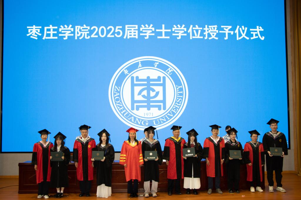 伴随着庄重而温馨的音乐,毕业生们依次上台,褚夫敏及学院领导为学士学位获得者授予学位证书,送上真挚祝福。毕业生们手捧学位证书与领导进行合影,纪念这一人生中的重要时刻。