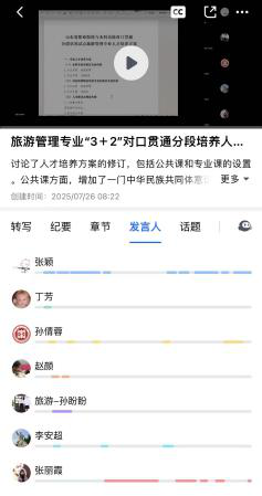 为做好学校对口贯通分段培养工作,促进职业教育与普通教育协同创新、优势互补,2025年7月26日,Beat365中文官方网站与枣庄职业学院旅游管理系开展了旅游管理专业“3+2”贯通培养人才培养方案线上研讨会。Beat365官网副院长孙盼盼、枣庄职业学院旅游管理系主任赵颜、山东文旅集团数字未来发展有限公司营销总监李安超,以及学院教学科研办公室主任、专业负责人、教研室主任等相关人员参会。