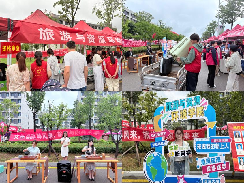 迎新现场,志愿者们热情周到地协助新生办理入学手续、搬运行李并耐心答疑,让初入校园的新生感受到家一般的温暖;学院领导与老师们也全程坚守一线,统筹协调,确保迎新流程的顺畅有序。为帮助新生和家长深入了解学院文化与专业特色,学院还特别举办了茶艺表演。伴随着悠扬的古典音乐,茶艺表演者展示温杯、投茶、注水等步骤,一举一动尽显传统韵味,让大家在品茗之余感受到学院的文化传承与专业魅力。现场还设有融合学院元素与青春风格的创意打卡板和背景墙。新生们手持设计感十足的KT板,脸上洋溢着兴奋与期待,纷纷留下与学院初遇的珍贵合影。