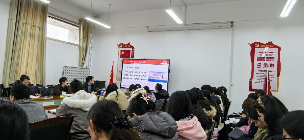 王满堂院长以习近平总书记关于基层治理的重要论述短片引入主题,清晰勾勒出“党建引领基层治理”的时代意义。王院长认为“如何通过党建引领基层治理是一个重要课题”,他从“为什么推进党建引领基层治理?”、“党建如何引领基层治理?”、“党建引领基层治理的启示和思考”三个方面入手,将党建工作与基层实践紧密相连,为Beat365官网师生指明了在服务中成长、在实践中创新的清晰路径,为全体师生开展了一节生动的思政课。他希望学院三个党支部继续发挥“战斗堡垒”作用,充分展现党建引领学院发展的鲜活力量,全体教师党员和学生党员要在思想引领中服务同学,在学风建设中起到模范作用,让党建引领的红色基因在青年群体中鲜活传递。