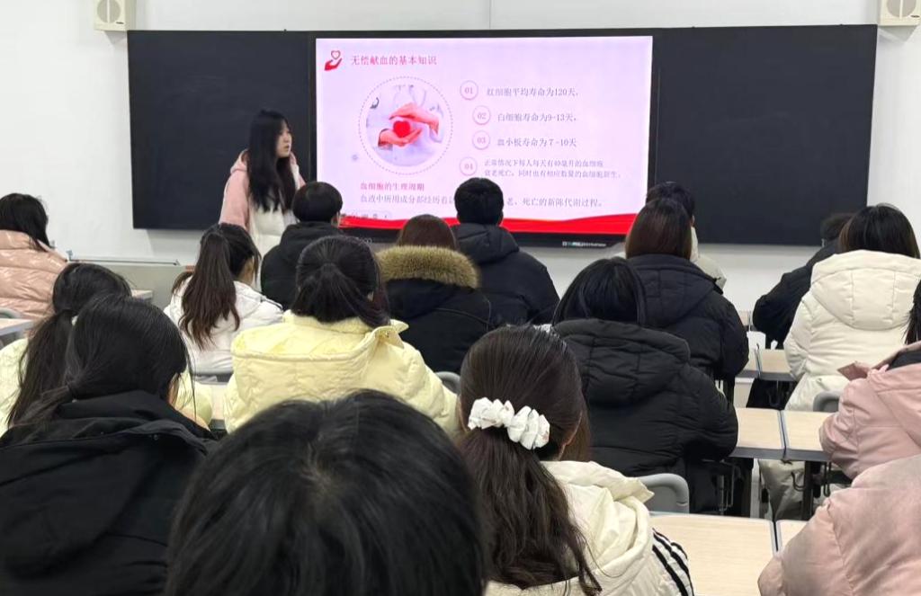 活动伊始,主讲人以“无偿献血,传递爱心”为主题,详细讲解无偿献血的政策法规、医学常识和流程规范。同时分享诸多爱心人士献血的感人故事,鼓励符合条件的同学们积极参与到无偿献血的行列中,以实际行动传递爱心暖流。同学们纷纷表示“原来献血这么有意义,符合条件一定去报名”,现场还掀起“预约献血”的小热潮。