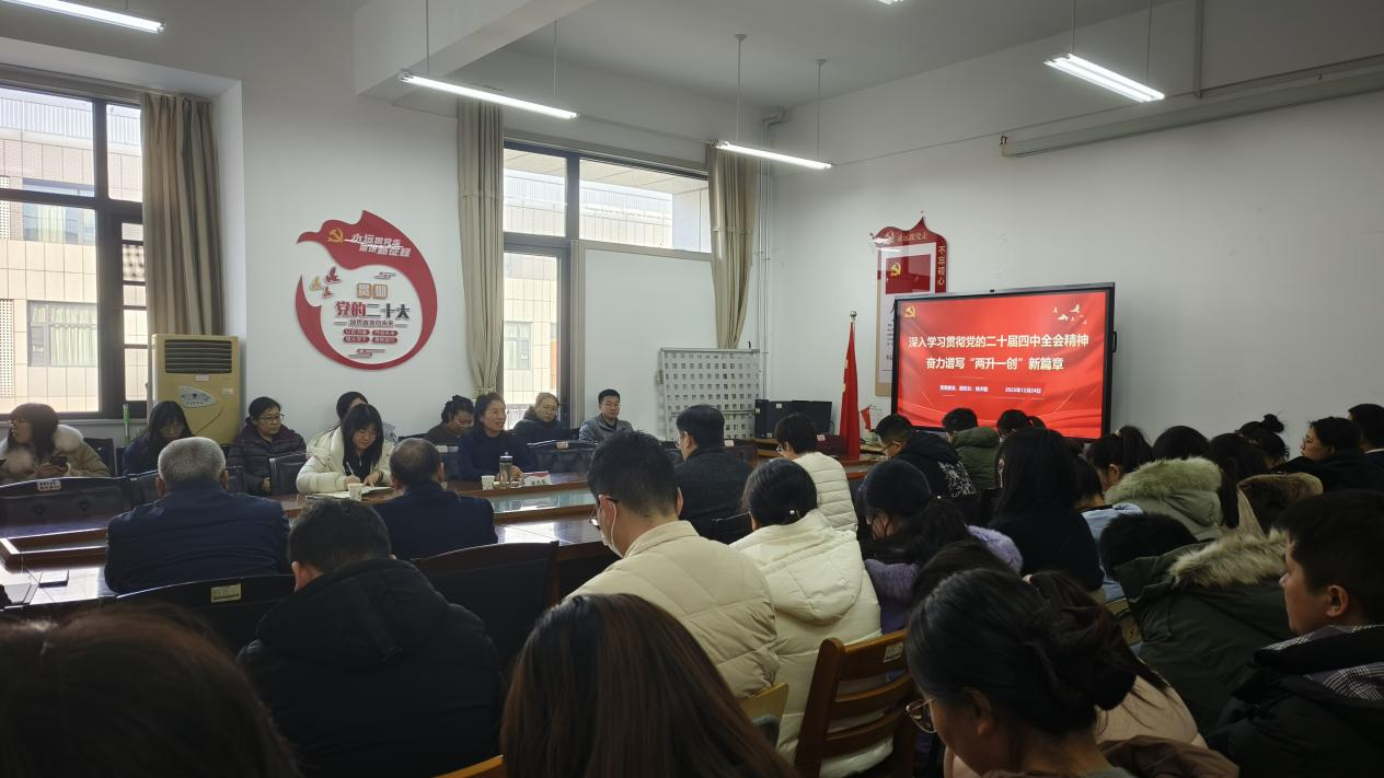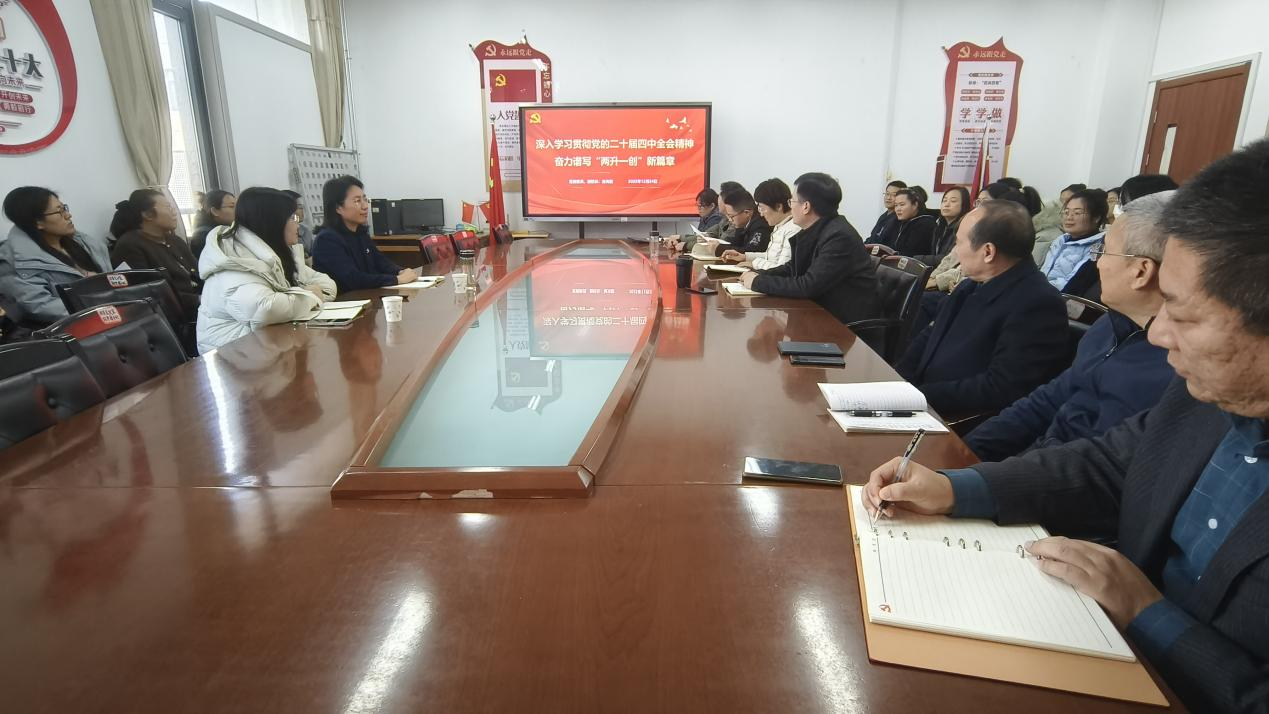 12月24日,校党委委员、副校长褚夫敏在Beat365中文官方网站豁然楼会议室,以“深入贯彻党的二十届四中全会,奋力谱写‘两升一创’新篇章”为主题,开展全会精神专题宣讲。学院全体教职工及部分党员学生代表参会。