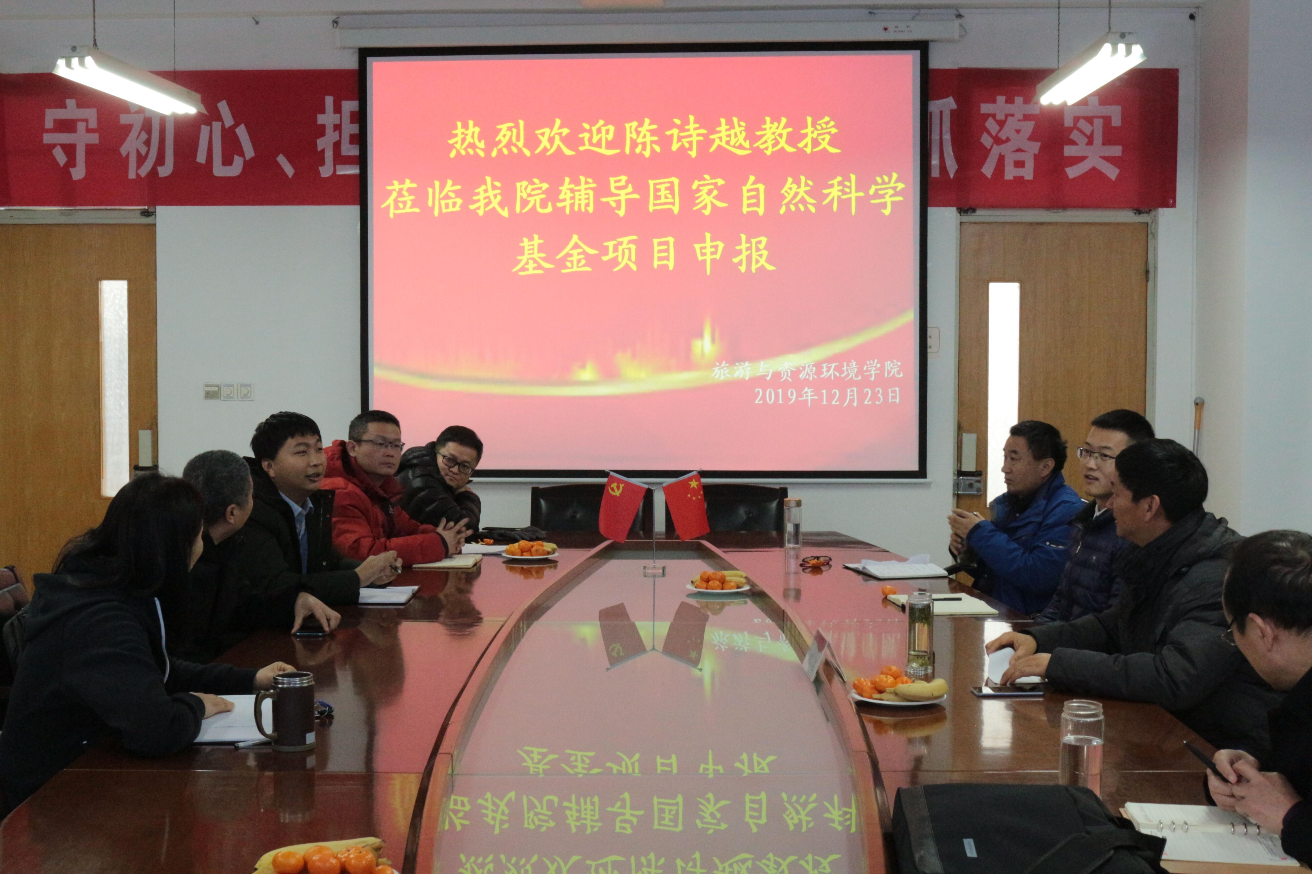 2019年12月23日,旅游与资源环境学院特邀江苏师范大学陈诗越教授在理工楼2514会议室作了题为2020年拟申报国家自然科学基金辅导报告。会议由副院长吴元芳主持。