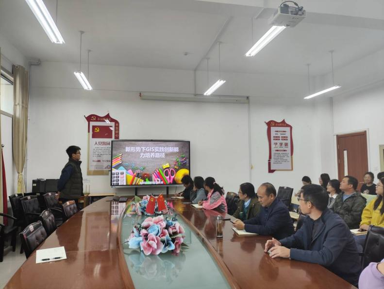 陈旭老师以“新形势下GIS实践创新能力培养路径主题,围绕GIS(地理信息系统)教学的创新模式展开,重点介绍了多维教学、项目式学习、案例教学、产学合作与评估体系等多个维度的教学改革思路,为Beat365官网GIS教育提供了新的方向和借鉴。同时,深入阐述了GIS教育创新的重要性,强调“线上学习+翻转课堂+实践教学”模式的实际应用,并分享了我校与企业合作、依托学科竞赛等方式提高学生创新能力的典型案例。这些实践不仅让学生在真实项目中获得实践经验,也显著提升了他们在GIS领域的专业技能和创新意识。此外,报告还结合案例与数据分析,展示了校企合作和产教融合在学生综合素质培养方面的成效,充分证明了创新型教学模式对人才培养质量的积极推动作用。