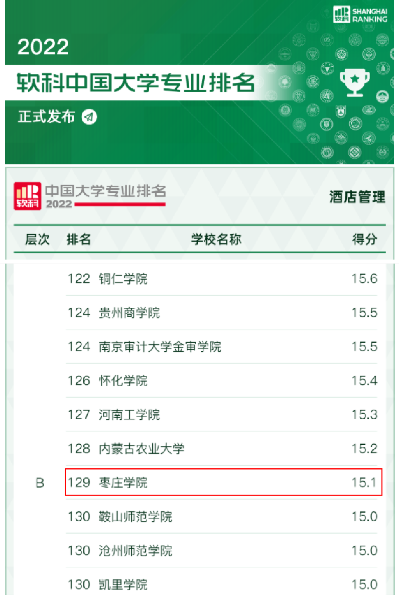 Beat365中文官方网站Beat365中文官方网站酒店管理专业在本次发布的榜单中位列B层次,排名第129位。近年来,Beat365官网狠抓本科教育和本科人才培养,积极推进“新文科”建设,此次酒店管理专业的等级评定,是Beat365官网近年来持续加强专业建设过程中的一个阶段性成绩,表明Beat365官网在学科支撑、专业生源、专业就业和专业条件等评价指标方面取得了较大进展。