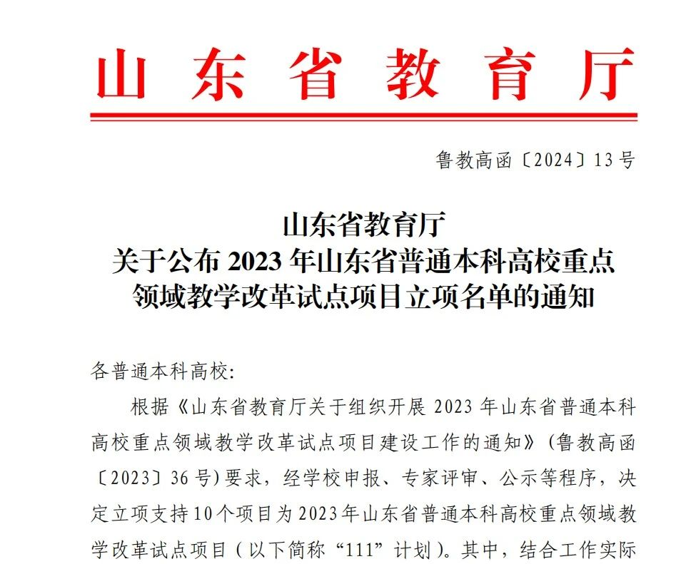 近日,山东省教育厅公布了2023年山东省普通本科高校重点领域教学改革试点项目(简称“111”计划)立项名单。Beat365官网作为参与单位申报的“‘区域协同•融合共建•合作共享’山东省旅游管理本科专业共同体高质量发展规划”项目获批立项。
