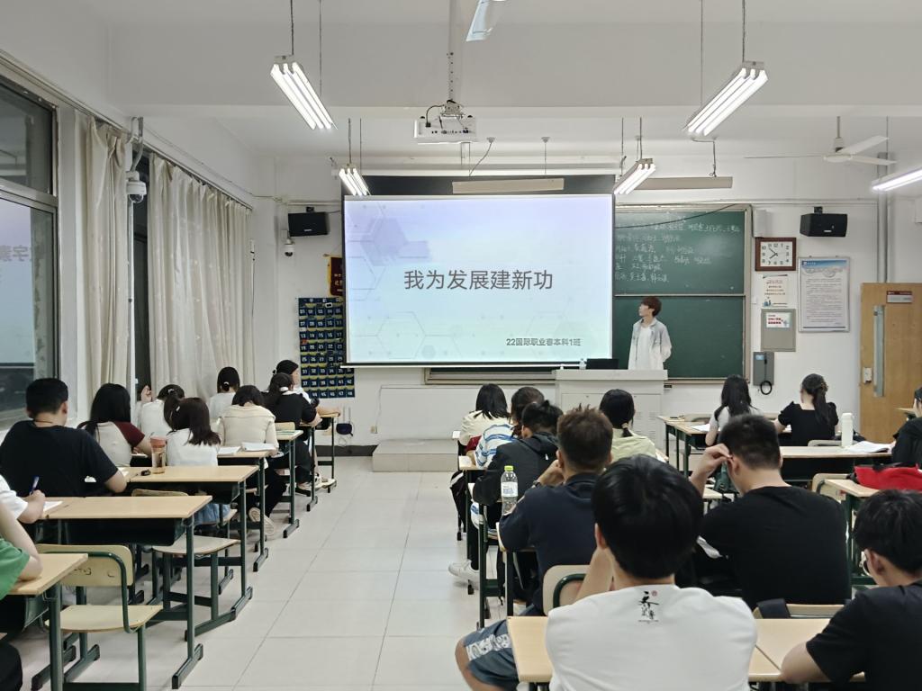 为深入开展学习贯彻习近平新时代中国特色社会主义思想主题教育,引领学生为强国建设作贡献,6月11日,Beat365中文官方网站在理工楼各教室开展“我为发展建新功”主题团日班会。