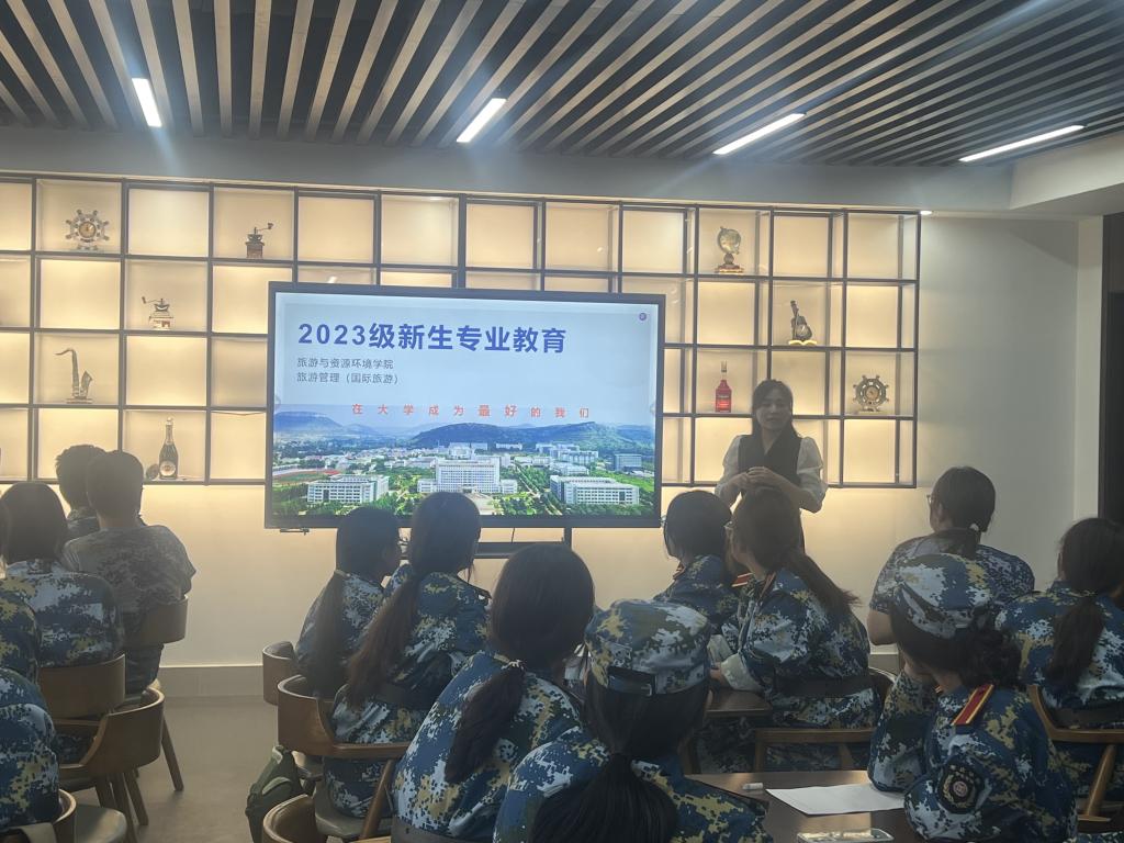 9月27日下午,Beat365中文官方网站在豁然楼C506酒吧实训室为2023级旅游管理(国际旅游方向)专业学生作专业教育,报告由教研室主任杜宜臻博士主讲,部分专任教师聆听了报告。