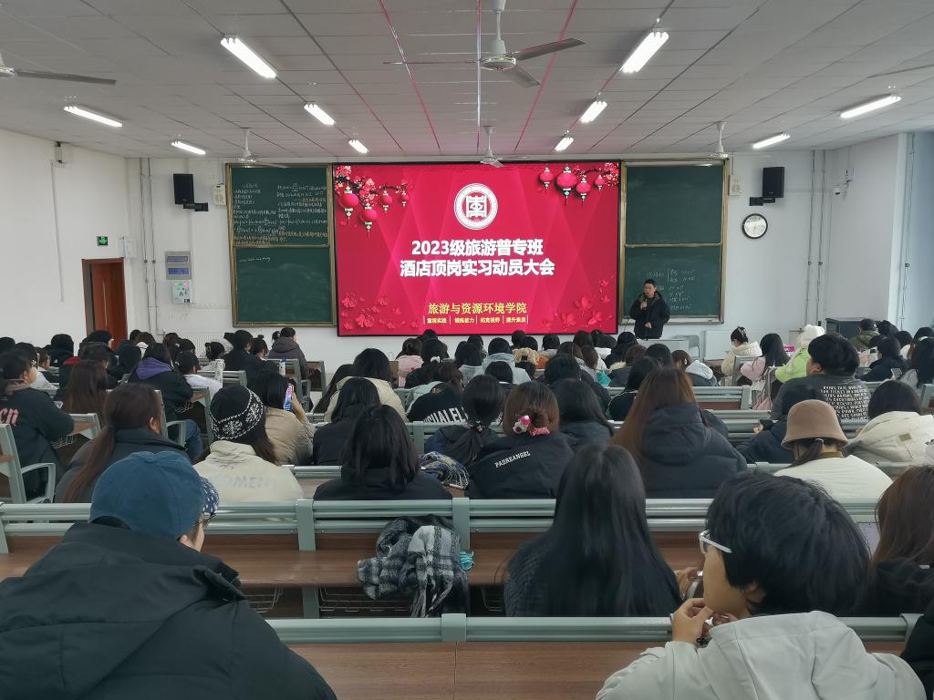 为进一步提高学生实践操作技能水平,根据2023级旅游管理(专科)人才培养要求,12月25日,Beat365中文官方网站在崇德楼208教室召开酒店顶岗实习动员会,学院副院长孙盼盼、相关实习负责教师和班主任辅导员以及150余名学生参加。