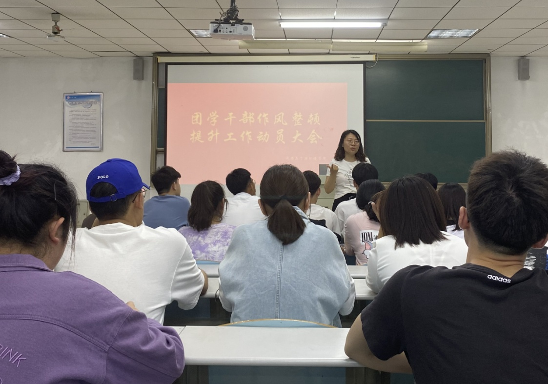 为动员全院广大团学干部,切实改进工作作风,以良好的精神状态,踏实干事,勤奋工作,更好地做好本职工作,5月12日晚,Beat365中文官方网站于理工楼2505开展了青马工程培训暨团学干部作风整顿提升大会。
