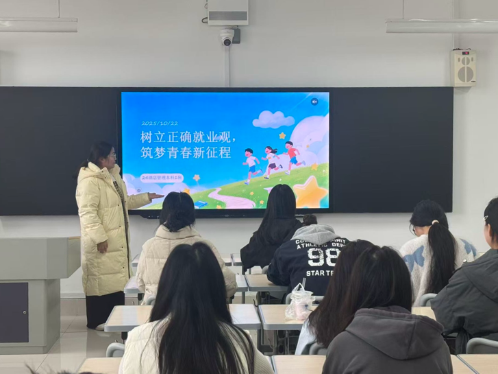 活动伊始,主讲人通过观看视频、案例分享等形式,带领同学们深入学习习近平总书记关于就业工作的重要指示精神。同时,主讲人结合国家最新就业政策和学校就业指导文件,引导同学们客观分析就业环境,树立“先就业后择业”的务实理念,并强调新时代青年应自觉将个人理想融入国家发展大局。在随后的讨论环节中,同学们踊跃发言,积极分享各自的职业规划与思考,现场气氛热烈。最后,主讲人鼓励同学们要提升专业能力、培养创新精神,把青春奋斗融入民族复兴伟业,以实际行动为社会发展贡献智慧与力量,实现个人价值与时代进步的同频共振。