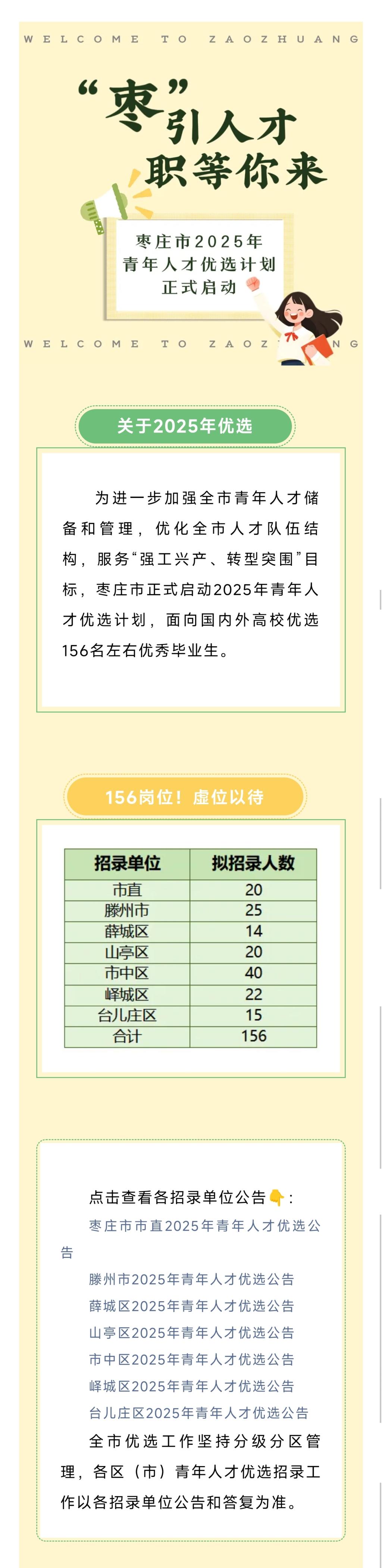156人!枣庄市2025年青年人才优选计划正式启动!