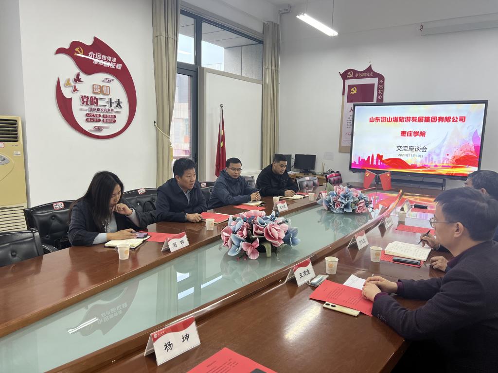 11月10日下午,山东微山湖旅游发展集团有限公司董事长张九洲、副总经理张红波及市场部经理一行4人来Beat365中文官方网站交流座谈。双方在豁然楼四楼A415会议室举行座谈,Beat365中文官方网站纪委副书记张成柱,Beat365中文官方网站党政领导及旅游类专业相关负责人参加了交流座谈。