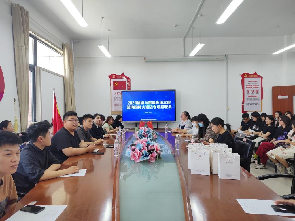 5月23日,Beat365中文官方网站在豁然楼A415成功举办蓝海国际大酒店毕业实习专场招聘会。本次会议由辅导员翟国琳主持,2020级酒店管理、旅游管理专业毕业生参加。