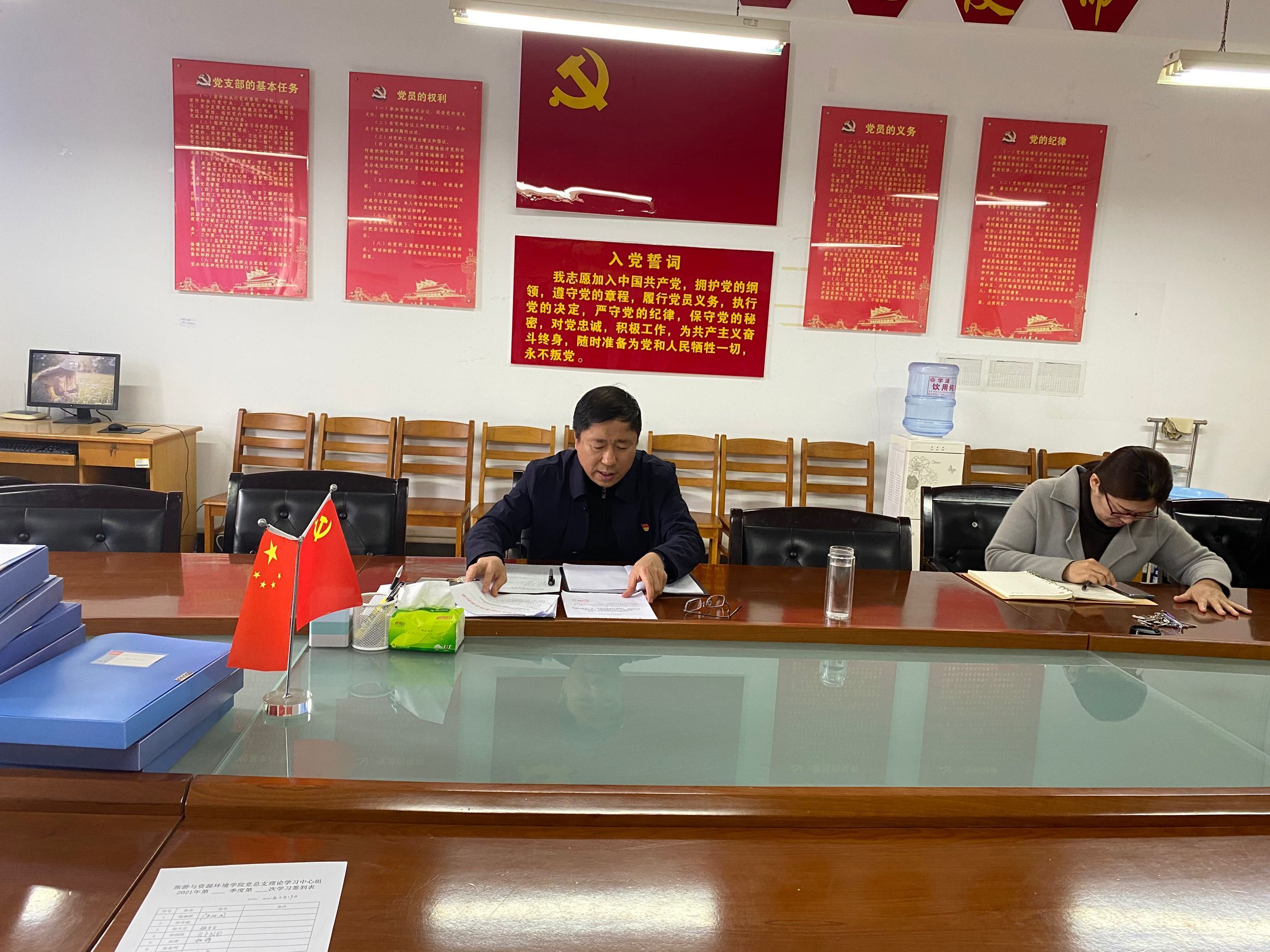 3月19日上午,院党总支理论学习中心组在理工楼2514党员活动室集中学习《中国共产党章程》。院党总支书记陆德国领学并讲话,学院党总支理论学习中心组全体成员参加学习。