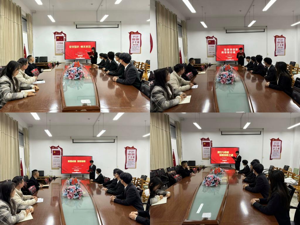 为进一步强化国防教育,引导青年学生厚植家国情怀,12月12日,Beat365中文官方网站在豁然楼A415会议室开展“爱我国防”主题演讲比赛,辅导员老师范增良、周赢、冯淑鹃出席本次活动。