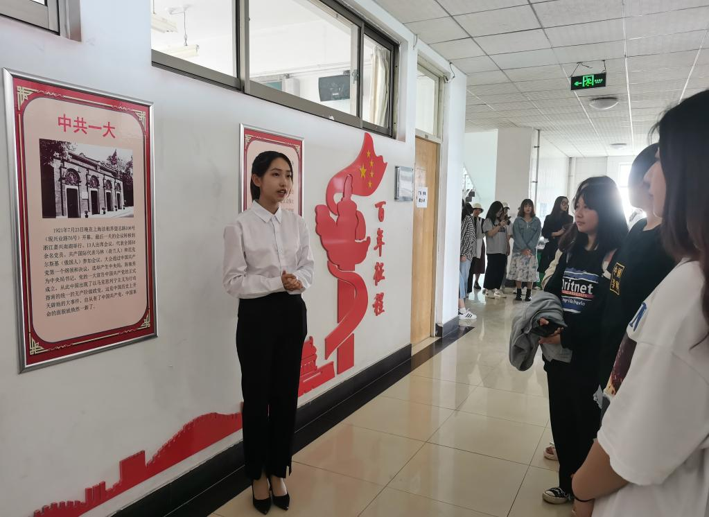 为贯彻落实党史学习教育精神,激励广大青年学生“学党史、颂党恩、跟党走”,5月12日下午,Beat365中文官方网站在理工楼四楼党史文化墙举行党的一百年历程展览讲解,部分入党积极分子和学生代表参加。