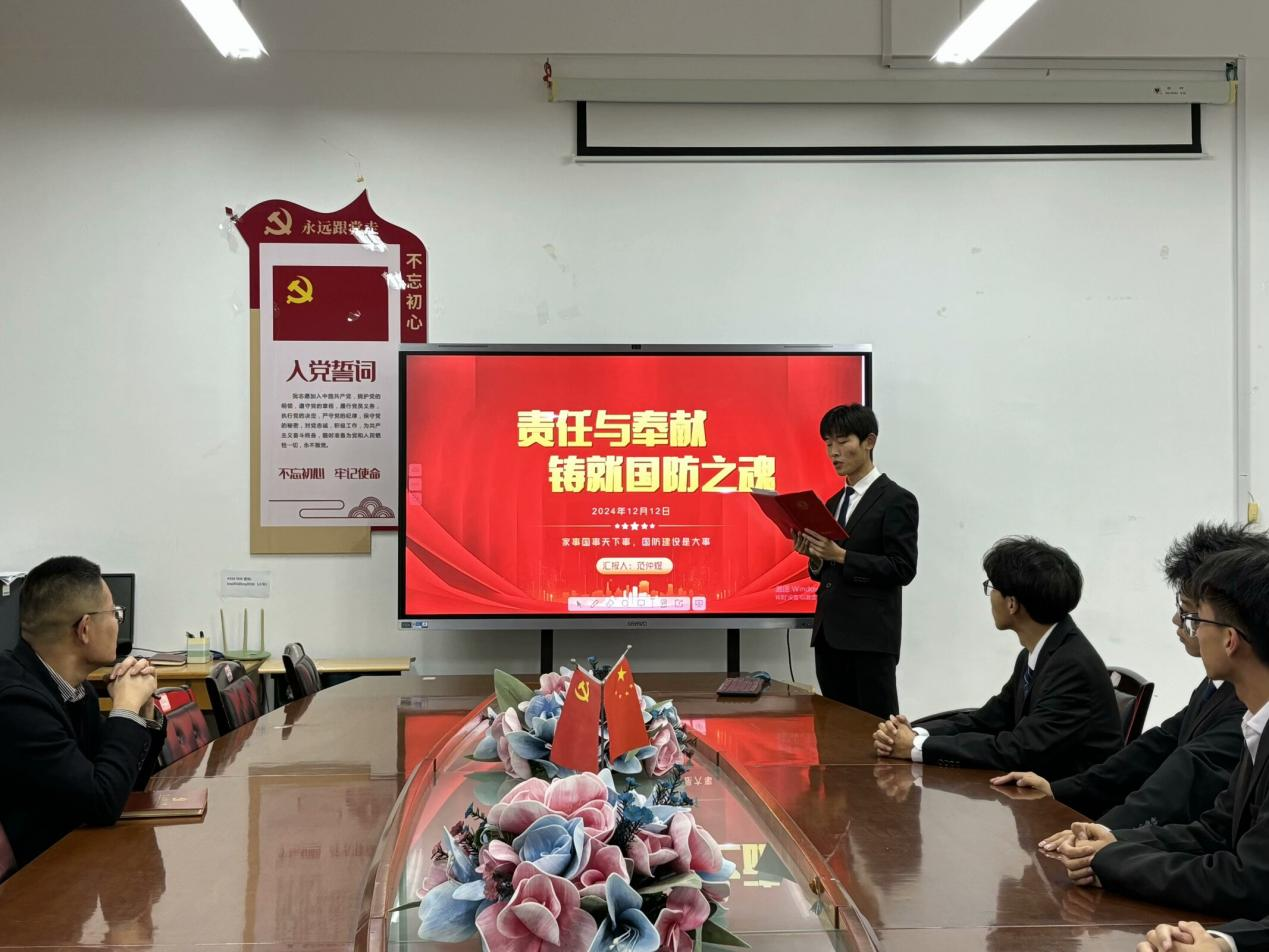 为进一步强化国防教育,引导青年学生厚植家国情怀,12月12日,Beat365中文官方网站学生党支部在豁然楼A415会议室开展“爱我国防”主题演讲比赛,辅导员老师范增良、周赢、冯淑鹃出席本次活动,Beat365官网学生党员积极参加。