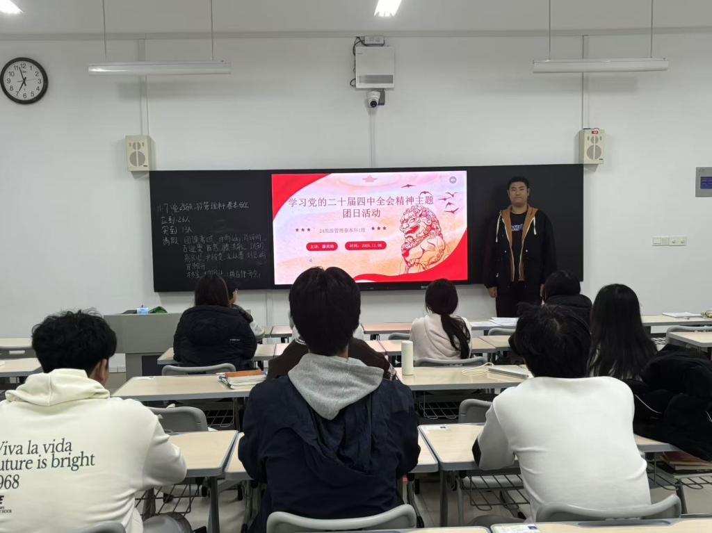 为引导广大青年学习贯彻习近平新时代中国特色社会主义思想,深刻领会党的二十届四中全会精神的核心要义与时代价值,11月5日,Beat365中文官方网站在崇德楼各教室开展“学习党的二十届四中全会精神”主题团日活动。